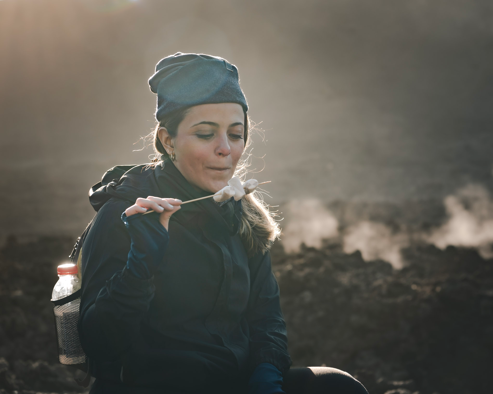 Descend to explore the blackened lava fields from previous eruptions. The cooled lava formations create an otherworldly landscape, where you'll also get to roast marshmallows using the heat of volcanic vents.
